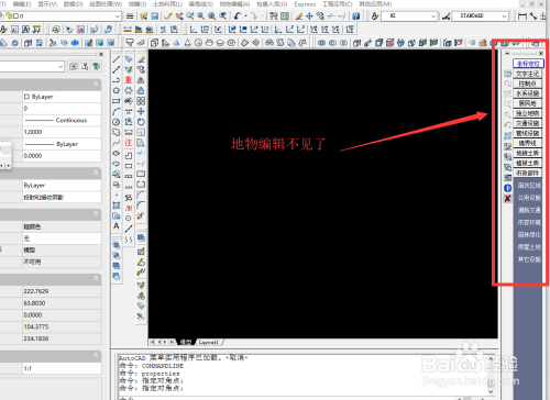 首先打开我们的cass,会发现地物编纂的窗口不见了,如图所示。