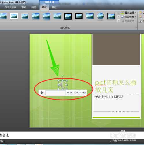 第三步,当PPT文件中呈现一个小喇叭图案时,申明音频文件添加当作功。