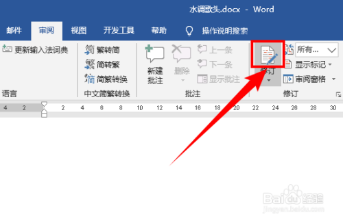 1、单击【核阅】--【修订】按钮,开启修订模式;