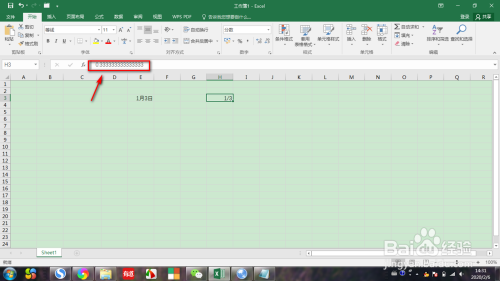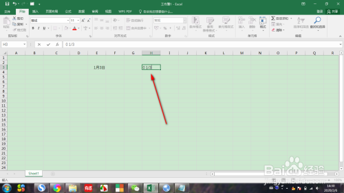 第一步,打开EXCEL表格,假设我们想输入1/3的分数,选中某一个单位格,录入数据,如下图所示: