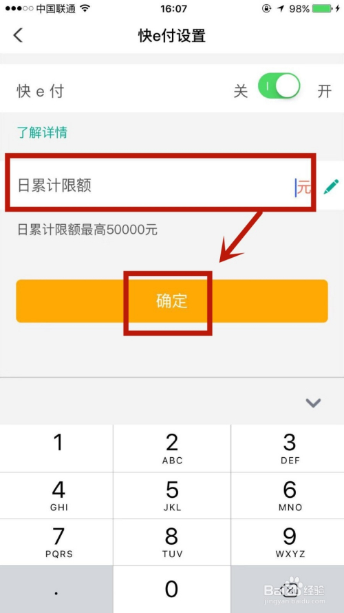 输入本身想要设定的额度,再点击下方简直定,即可当作功操作。