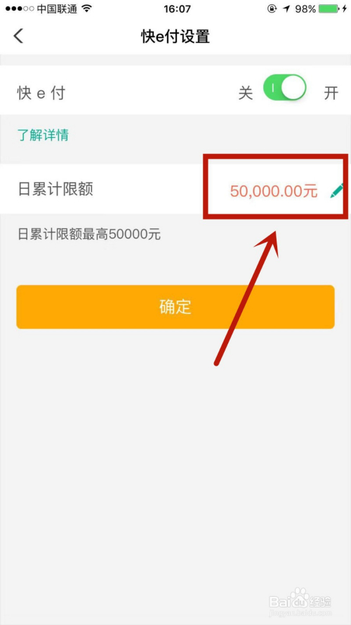 在快e付设置页面,点击进入金额编纂小标。