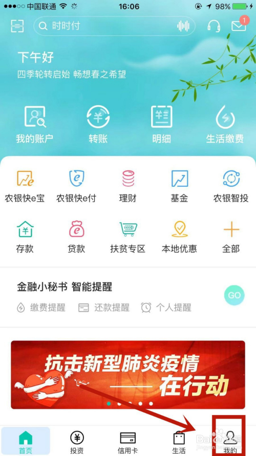 1.打开中国农业银行,点击右下角的我的。