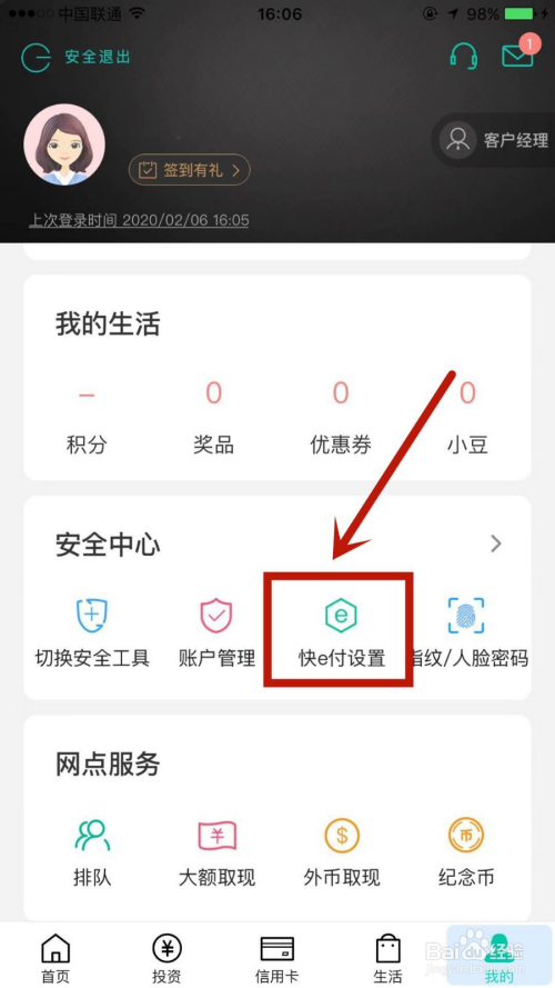 当作功登录后,点击平安中间下的快e付设置。