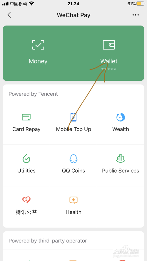 在“我”的界面选择“微信支付”,之后选择点击“我的钱包”。