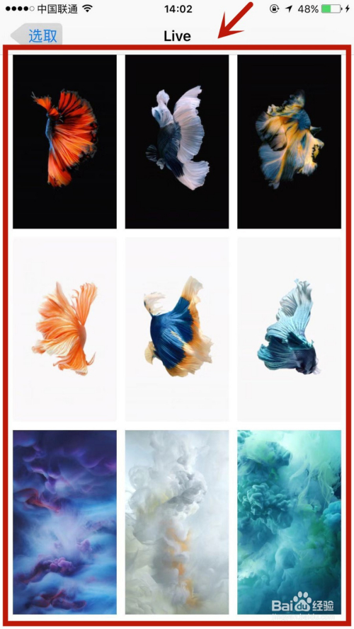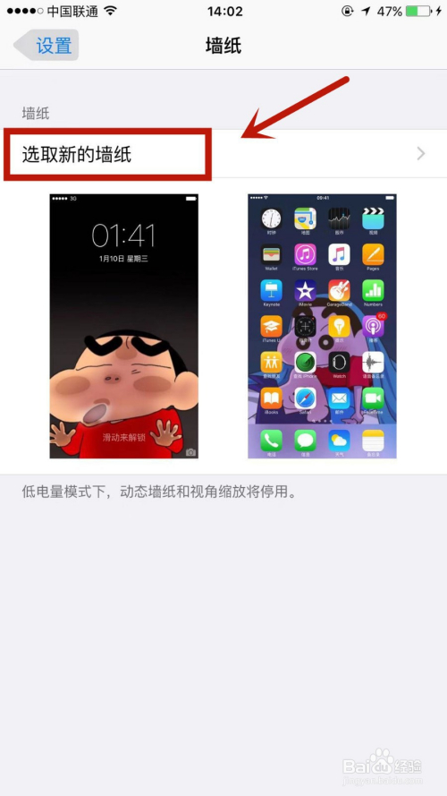 在墙纸页面,点击进入拔取新的墙纸选项。