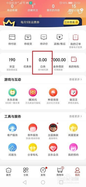 第三步我们也可以多利用白条取现,来进行增添白条取现额度,打开京东,点击白条,如下图所示: