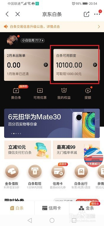 第五步进去之后,进行白条取现,多进行取现,然后按时还条目,这样就可以增添白条取现额度了,如下图所示: