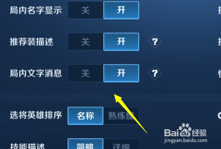 在战斗设置的处所我们找到一个局内文字这里我们设置为开。