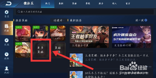 点开之后页面左半边会呈现一些英雄,后面会有一个“更多英雄”的选项,点开。