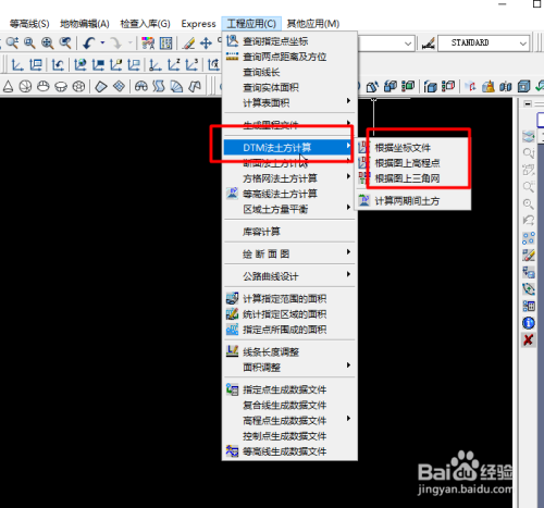 第一种方式为DTM法土方计较,可以按照坐标点文件、图面高程点、三角网文件等方式计较两期土方量,成立DTM 、生当作三角网的方式可参照小编“CASS如何绘制断面图?”经验第一二三步调操作,如图所示。