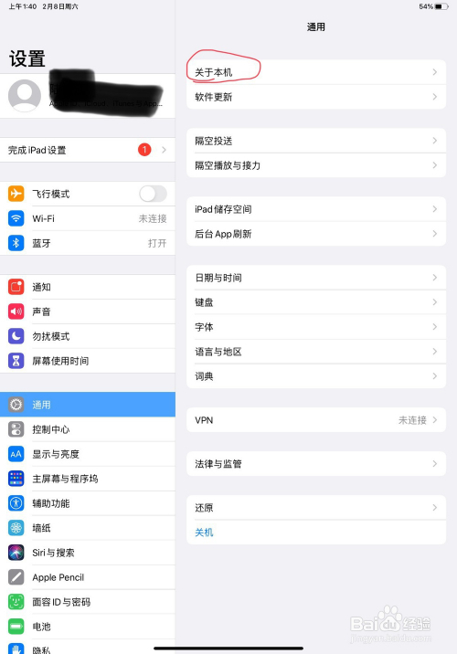 打开iPad找到【设置】并打开点击【通用】并点击【关于本机】