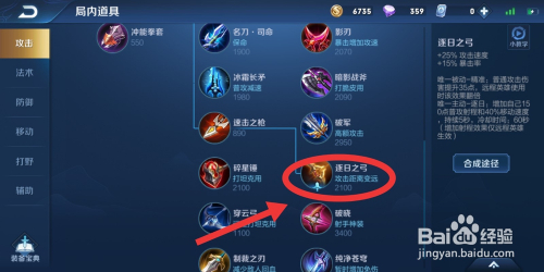 第五件选择每日之弓,这名字一听就跟后羿是绝配,能增添进犯速度和暴击率,最主要的是使进犯距离变远。