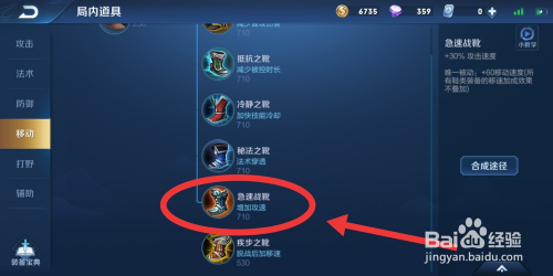 第一件仍是像后羿此外出装一样,选择急速战靴。
