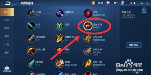 第三件选择泣血之刃,可以物理吸血,普攻打到仇敌或者小兵或者野怪都可以加血。