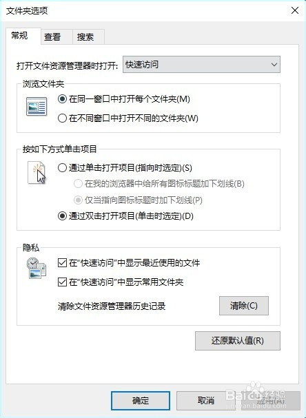 4、这时我们就可以打开文件夹选项窗口。