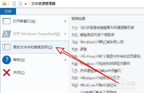 在打开的下拉菜单中,点击更改文件夹和搜刮选项的菜单项。