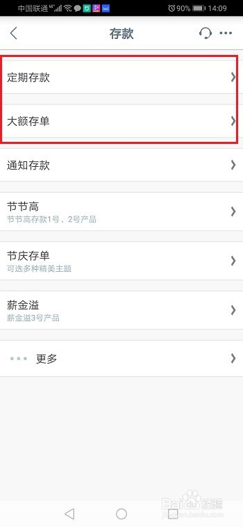 3.点击存条目,进去之后,按期存条目和大额存条目是可以晋升星级的