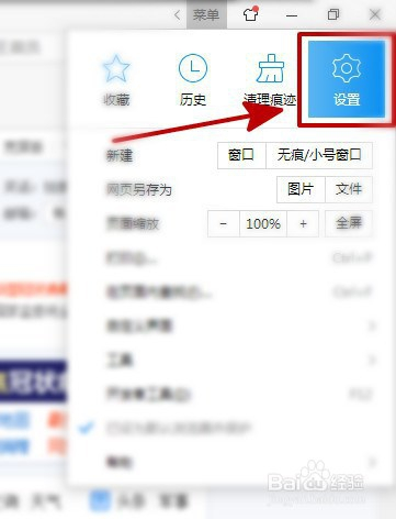 这时可以在菜单下方看到菜单列表,选择选项栏中的设置;