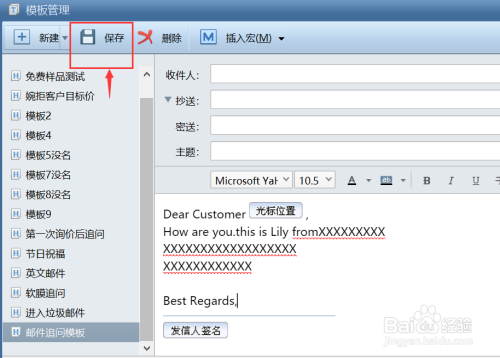 输入完文字之后,点击上方的“保留”,即可保留邮件模板。