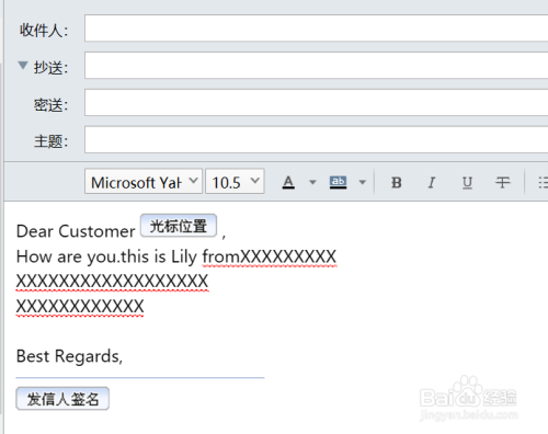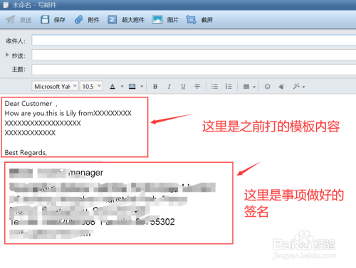 进入模板后,就可以起头写邮件了。