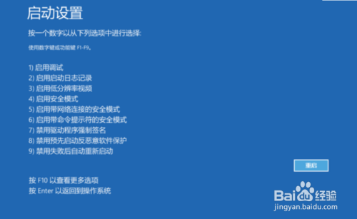 【启动设置】:点击重启;