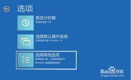 在Windows 10系统进入平安模式的一般步调前增添了【更改默认值或选择其他选项】和【选项】两个步调。