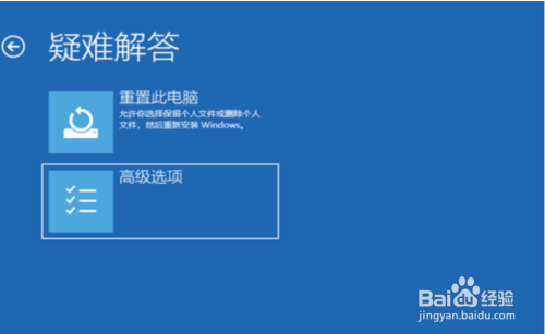 【疑难解答】:点击高级选项;