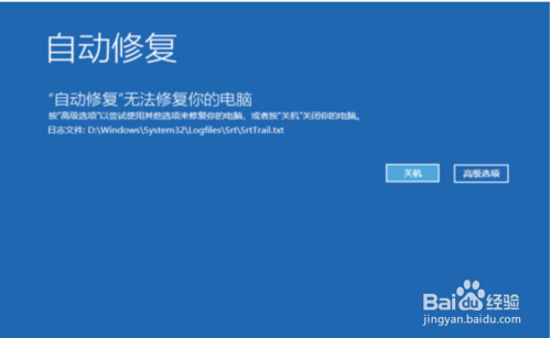 接着进入【主动修复】,显示:主动修复无法修复您的电脑,我们点击:高级选项;