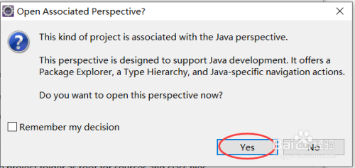 在打开的Open Associated Perspective对话框中,我们选择Yes,如下图所示:
