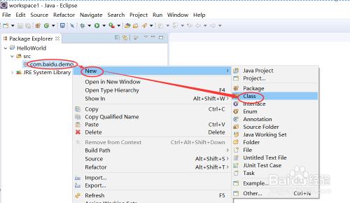 右键刚建立的包名,选择”New“->”Class“,如下图所示: