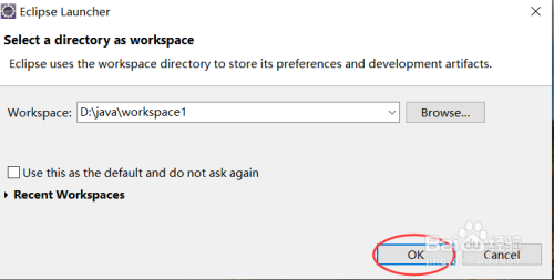 弹出Eclipse Launcher对话框,提醒进行工作空间目次设置,然后点击“OK”,如下图所示: