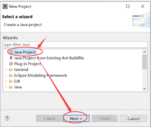 在弹出的对话框中,选择Java Project,然后点击Next,如下图所示: