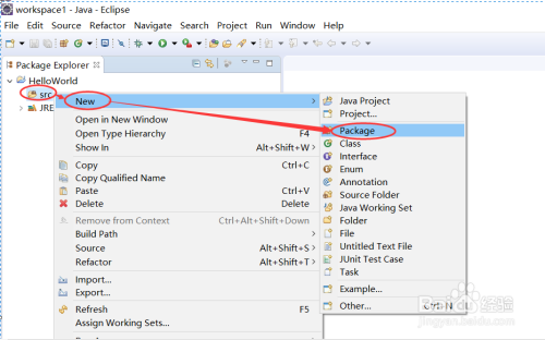 右键选择src目次,选择”New“->”Package“,如下图所示: