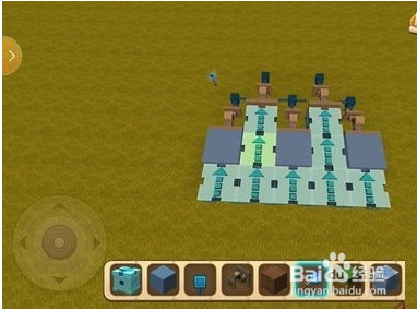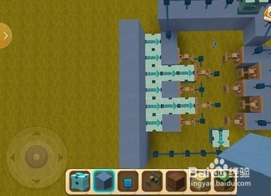 1.首先像那样摆好方块,从左往右放六个按钮。