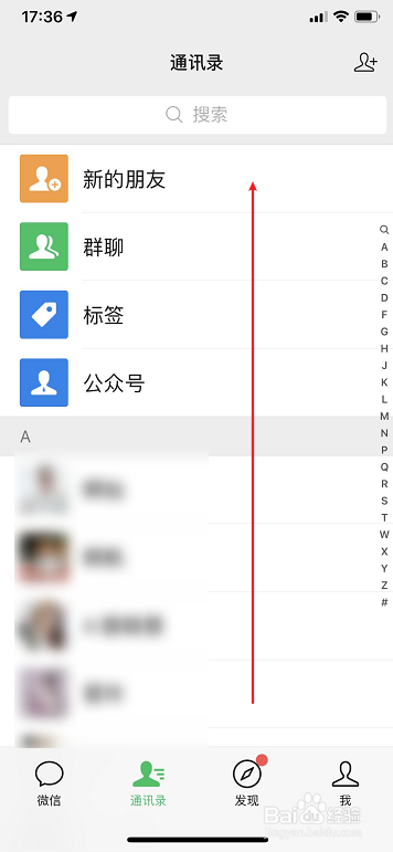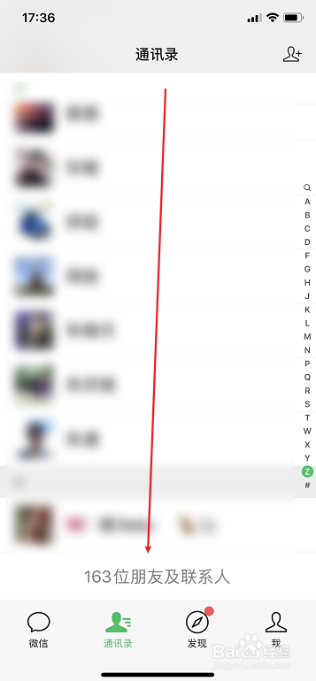 达到通信录页面底部后就可以查看到【总共有多个联系人老友】