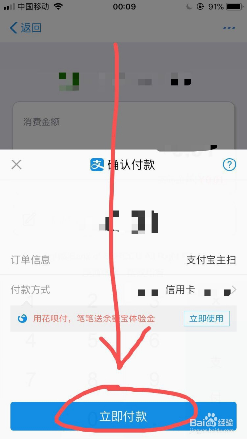 在选择付条目体例选项中点击选择本身添加的信用卡,然后主动返回到确认付条目页面。