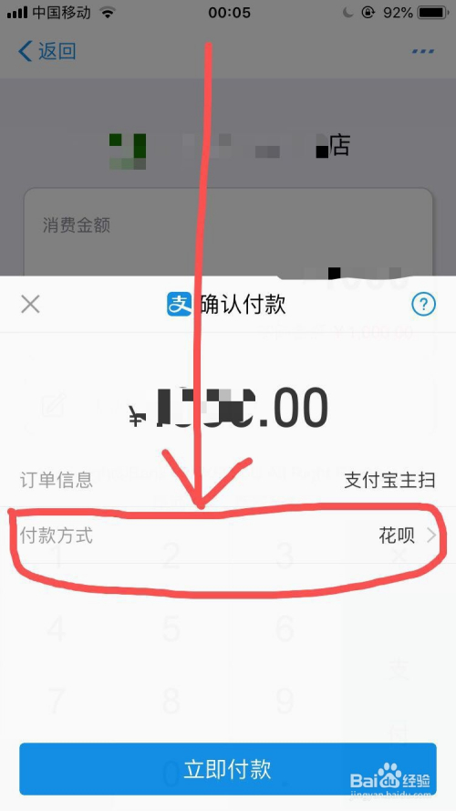 扫描完他人的收条目码后,输入消费金额,点击“支付”选项。