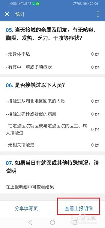 第二步进去健康上报统计界面,点击进去,如下图所示: