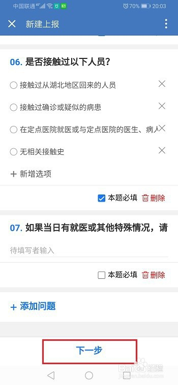 第四步选择健康环境上报的人和天天员工上报的时候,点击完当作,如下图所示: