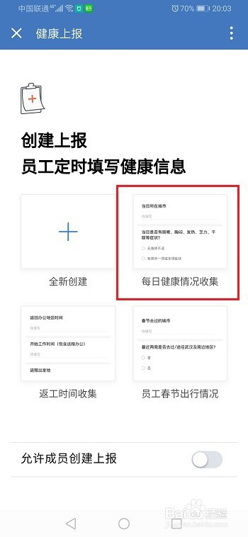 第二步打开企业微信,点击健康上报,选择每日健康环境收集,如下图所示: