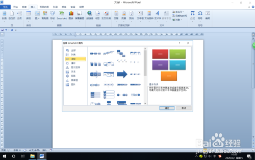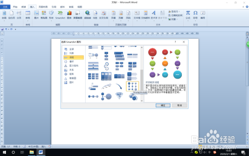 第二步:在打开的“选择smartArt图形”对话框中单击“流程”。