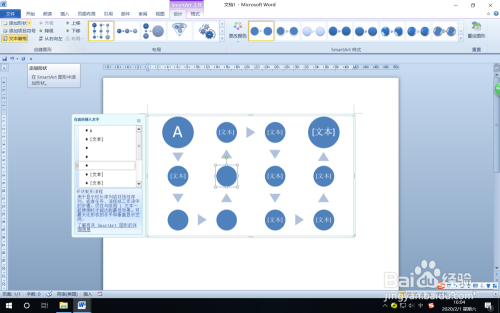 第六步:在图形中选择文本,单击“smartArt东西”的“设计”选项卡,在“建立图形”组单击“添加外形”按钮,可以添加外形和项目符号。