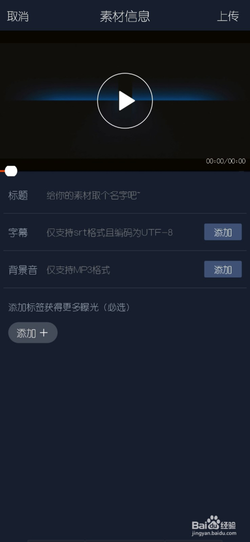 接着,按照手机提醒,进入界面选定本身想要上传的视频,紧接着app会呈现这样的页面,我们只需要按照提醒,填好视频的要素就可以啦。