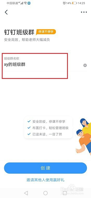 第四步进去建立班级群界面之后,输入群名字,点击建立