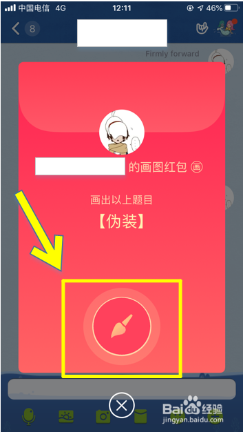 1.首先进入QQ,在聊天界面找到关于伪装的QQ绘图红包并点击打开。