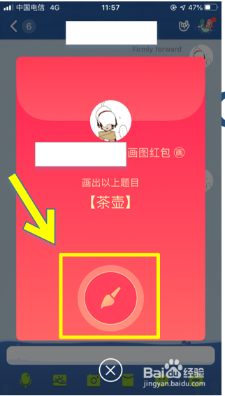 1.首先进入QQ,在聊天界面找到关于茶壶的QQ绘图红包并点击打开。