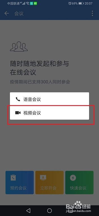 第三步这里选择当即开会,点击视频会议,如下图所示: