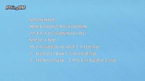 - 3封人权限,有人在频道拆台侵扰频道,黄马办理员就有权限把这小我封出频道,封人分2种:一种封ID封了ID换个号可以在进频道,一种封IP,IP被封就说只能换一个处所,上网才能进这个频道。