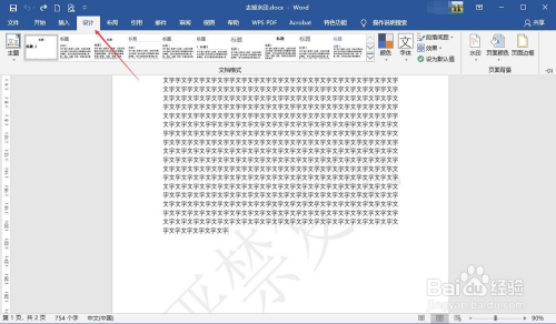 点击Word菜单栏的“设计”,打开设置东西栏,如下图所示。